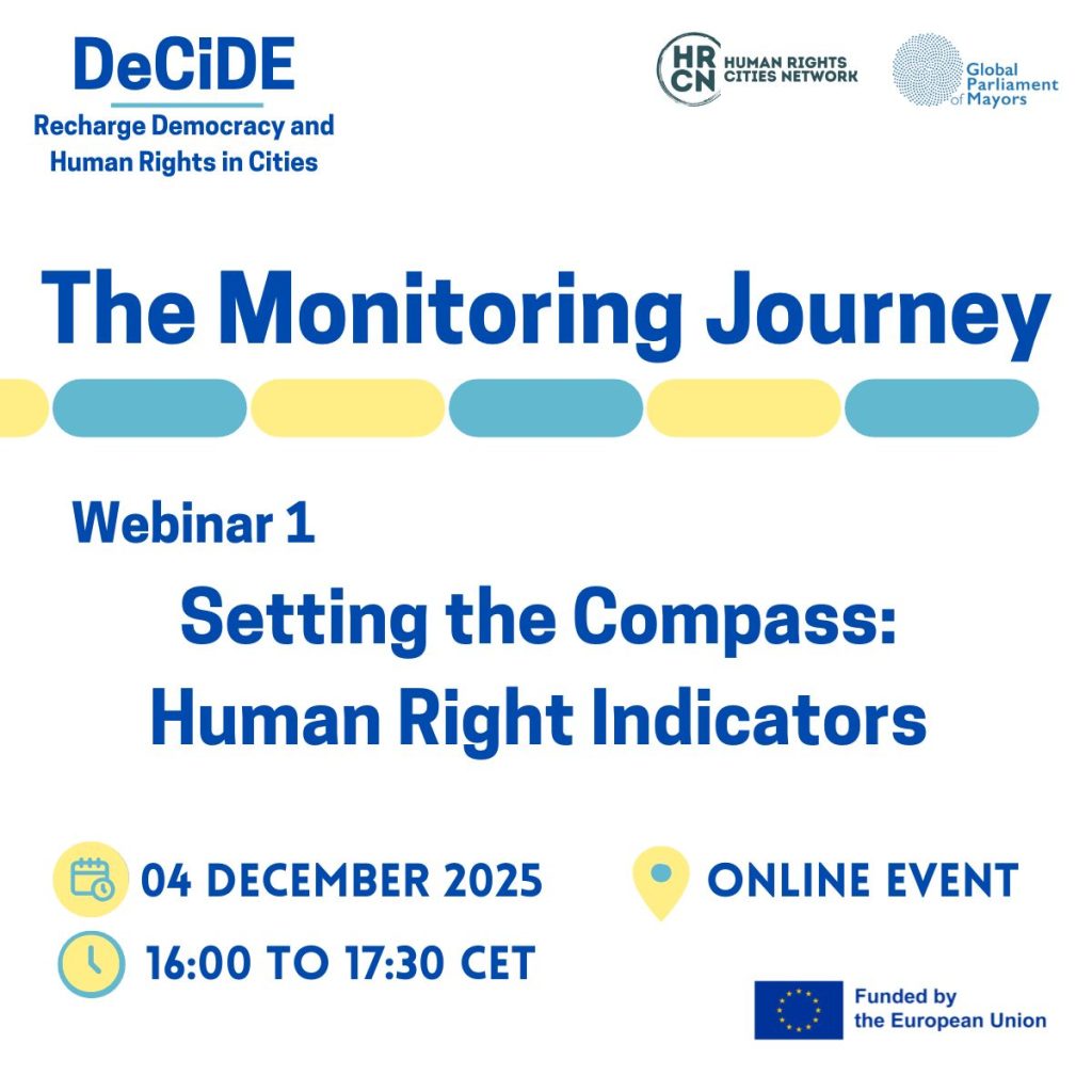 The Human Rights Cities Network (HRCN) and the Global Parliament of Mayors (GPM) invite you to a special webinar on 17 December in celebration of Human Rights Month. This kick-off event will lay the foundation for an ambitious journey under the DeCiDE Project, focused on co-creating an effective and inclusive human rights monitoring system for cities. The session will